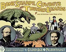 Bone Sharps, Cowboys, and Thunder Lizards: A Tale of Edward Drinker Cope, Othniel Charles Marsh, and the Gilded Age of Paleontology is a 2005 graphic novel written by Jim Ottaviani and illustrated by the company Big Time Attic. The book tells a fictionalized account of the Bone Wars, a period of intense excavation, speculation, and rivalry in the late 19th century that led to a greater understanding of dinosaurs and other prehistoric life. Bone Sharps follows the two scientists Edward Drinker Cope and Othniel Marsh as they engage in an intense competition for prestige and discoveries in the western United States. Along the way, the scientists interact with historical figures of the Gilded Age, including P. T. Barnum and Ulysses S. Grant.