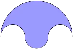 If AB be the diameter of a semicircle and N any point on AB, and if semicircles be described within the first semicircle and having AN, BN as diameters respectively, the figure included between the circumferences of the three semicircles is "what Archimedes called αρβηλος"; and its area is equal to the circle on PN as diameter, where PN is perpendicular to AB and meets the original semicircle in P.[1]