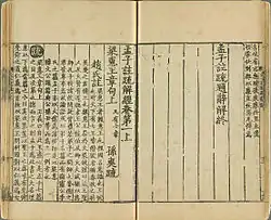 The Mencius is an anthology of conversations and anecdotes attributed to the Confucian philosopher Mencius (c. 371 – c. 289 BC).[1] The book is one of the Chinese Thirteen Classics, and explores Mencius's views on the topics of moral and political philosophy, often as a dialogue with the ideas presented by Confucianism.[2][1] The interviews and conversations are depicted as being either between Mencius and the various rulers of the Warring States period (c. 475 – 221 BC), or with his students and other contemporaries. The book documents Mencius's travel across the states, and his philosophical conversations and debates with those he meets on his journey.[2] A number of scholars suggest that the text was not written by Mencius himself, but rather by his disciples.[3] The text is believed to have been written during the late 4th century BC.[3]