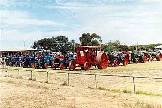 Booleroo Centre is home to the Booleroo Steam & Traction Preservation Society Museum. The society, developed from an annual rally first held in 1969, now maintains one of Australia's largest collections of tractors and steam engines along with farm and other steam equipment requiring over 2,900 square yards (2,425 m2) of undercover storage space.[13] The rally is held at the town oval the last Sunday in March.[5]