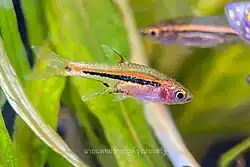 The least rasbora or exclamation point rasbora (Boraras urophthalmoides) is a species of ray-finned fish in the genus Boraras, native to freshwater habitats in mainland southeast Asia.[3] This species is very small, ranging from 12 to 16 mm (0.47 to 0.63 in).