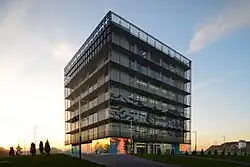 Hypercube is the first building at the Skolkovo Innovation Center. The decision to erect the Hypercube building was made by Russian president Dmitry Medvedev in 2010. The building is a platform for communication, combining the roles of a public space and generator for new start-up enterprises, and part of a university campus. The building has its own energy and water supplyautonomous systems. Hypercube was built in accordance with the green standard "Leadership in Energy & Environmental Design" (LEED v3).[8]