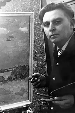 A large number of his works were donated to and acquired by Russian museums and Russian State Art foundations. Some of his works are in permanent collections in the Tretyakov Gallery ("Self Portrait"),[11] State Russian Museum (oil painting "Window. Poplar branch.", two graphic portraits, and eight portrait drawings)[12][13][14] and the Museum of the History of St. Petersburg (three landscape oil paintings),[15] the Benois Family Museum[16] (landscape oil painting),[17] the Yelagin Palace Museum (landscape oil painting),[18] and others.