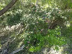 Boronia alata is cultivated as an ornamental plant. It is able to be propagated from cuttings. As with most boronias, a heavily shaded situation is preferred for this species. The persistent flowers first appear in the austral spring, in a boronia form that is more open and 'star shaped' than concave or cupped; these are usually pink or infrequently white in colour. The native conditions can be simulated by providing well drained sand, with deep mulch or sandstone sheets that maintain available moisture and protect roots from higher temperature.[5] The species was introduced to English gardens in 1824 as a small evergreen greenhouse specimen, flowering from May to July.[9] The scent of the flowers is slightly fragrant.[10] The vigour of its rootstock was recommended for grafting with Boronia pinnata for English enthusiasts.[11]