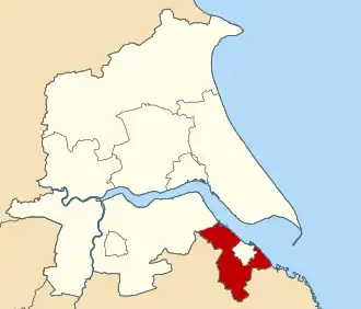 Cleethorpes was a local government district in Humberside, England from 1974 to 1996. It was granted borough status in 1975. It was formed on 1 April 1974 and covered Cleethorpes itself along with a wider area including Humberston, Laceby, Stallingborough, New Waltham, and Immingham (formerly part of the Grimsby Rural District).[1] Based at Cleethorpes Town Hall,[2] it was abolished on 1 April 1996 (along with Humberside) when it was merged with the borough of Great Grimsby as the new unitary North East Lincolnshire.[3]