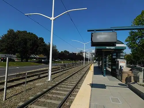 Borregas station is a light rail station operated by Santa Clara Valley Transportation Authority (VTA), located in Sunnyvale, California. This station is served by the Orange Line of the VTA light rail system. The station is located in an industrial area; nearby offices include the headquarters of Infinera and Ruckus Networks.