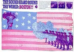 What became the genesis of the Bosstown Sound is said to exist, at least in rudimentary form, as early as June 1967, when journalist Mel Lyman's first issue of Avatar was pressed. His newspaper carried an advertisement promoting a scheduled event, headlined by two of Boston's earliest psychedelic rock bands, Ill Wind and the Hallucinations, at the Boston Tea Party.[7] Ill Wind and the Hallucinations' performances helped establish the Boston Tea Party as a must-go-to venue for the city's psychedelic scene, and soon other like-minded musical acts—among them the Velvet Underground, the Peanut Butter Conspiracy, and Lothar and the Hand People—became frequent attractions.[8] Journalist Earl Greyland, described the Boston Tea Party's importance in Boston After Dark: "[It] occurred on March 15, 1968, when, as the staid WBCN audience sat listening to its usual Muzak, the voice of Frank Zappa asked, 'Are you hung up?' and Cream launched into 'I Feel Free'. That was the beginning of the American Revolution, a daily seven-hour program originating from the dressing room of the Tea Party. The combination of providing an established performance setting and radio exposure made the Tea Party a gig second in importance only to the Fillmore".[9] Other psychedelic venues that contributed to the promotion of the underground music scene in Boston include the Psychedelic Supermarket, the Crosstown Bus, the Catacombs, and the Unicorn.[10][11]
