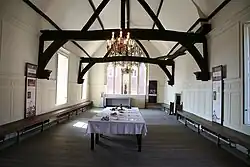 St. Mary's Guild in Boston was founded as a merchant guild by a group of individuals in 1260.[3][4] The guildhall, based on evidence from dendrochronology, was built in 1390, two years before incorporation of the guild and probably in anticipation of that event.[5] The guild became wealthy as a result of extensive gifts received in the 14th and 15th centuries; an inventory shows that it held various items of gold, silver and gilt, as well as the sacred relics.[6] In the 16th century, it established one of the country's richest trades in indulgences (in direct competition with Austin Friars).[7] As a result of the dissolution of the chantries and religious guilds, imposed by King Edward VI, the guildhall was confiscated by the Crown and passed to the Boston Corporation in 1555.[6]