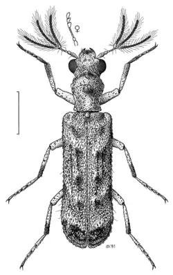 3. ^ Legalov, Andrei A. (December 2018). "New auger beetle (Coleoptera; Bostrichidae) from mid-Cretaceous Burmese amber". Cretaceous Research. 92: 210–213. Bibcode:2018CrRes..92..210L. doi:10.1016/j.cretres.2018.08.014. ISSN 0195-6671. S2CID 133930742.