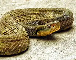 Bothrops jararaca—known as the jararaca[4] or yarara[5]—is a highly venomous pit viper species endemic to South America in southern Brazil, Paraguay, and northern Argentina. The specific name, jararaca, is derived from Old Tupi îararaka. Within its geographic range, it is often abundant and is an important cause of snakebite.[4] No subspecies are currently recognized.[6]