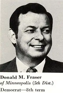 About one year later, Representative Donald Fraser introduced H.R. 14576 in the U.S. House of Representatives. This bill would give wilderness status to all of the BWCA and would end logging, motorized vehicles, and mining.[3]