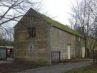 Grade II listed building, supposedly built with materials taken from the castle, particularly the "arrow slit" windows.[2]