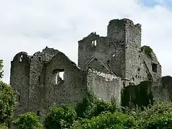 The Seys family,[3] prominent in Glamorgan throughout the 17th century, moved out in the late 17th century and it fell into decay in the following century. Local legend states the castle is haunted by the Black Lady who was spotted by men working on the castle in the early 19th Century. She was described as a tall, shadowy figure dressed in mourning clothes.[4]