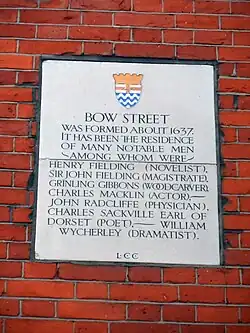The Bow Street Runners were the law enforcement officers of the Bow Street Magistrates' Court in the City of Westminster. They have been called London's first professional police force. The force originally numbered six men and was founded in 1749 by magistrate Henry Fielding, who was also well known as an author.[1] His assistant, brother, and successor as magistrate, John Fielding, moulded the constables into a professional and effective force. Bow Street Runners was the public's nickname for the officers although the officers did not use the term themselves and considered it derogatory.[2] The group was disbanded in 1839 and its personnel merged with the Metropolitan Police, which had been formed ten years earlier but the London metropolitan detective bureau trace their origins back from there.