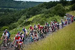 An estimated 850,000 people visit Box Hill each year.[2] The National Trust visitors' centre provides both a cafeteria and gift shop, and panoramic views of the western Weald may be enjoyed from the North Downs Way, a long-distance footpath that runs along the south-facing scarp slope. Box Hill featured prominently on the route of the 2012 Summer Olympics cycling road race events.[6]