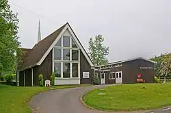 The village of Box Hill is to the east of the summit and to the west of the Country Park owned by the National Trust. The earliest flint cottages date from the 1800s, although much of the village was constructed in the first half of the 20th century.[11] By 2005 there were more than 800 dwellings, of which over five hundred were mobile homes. An estimated 41% of the community is aged 60 or over.[12] St Andrew's Church, part of the ecclesiastical parish of Headley, was consecrated in 1969 and the village hall opened in 1974.[13][14] The village is not part of a civil parish.