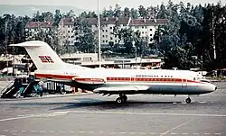 The accident aircraft, a Fokker F28 Fellowship 1000 had aircraft registration LN-SUY[1] and was named Sverre Sigurdsson. It was equipped with two Rolls-Royce Spey Jr. 555-15 engines.[2] Braathens SAFE was the launch customer of the F28 and Sverre Sigurdsson was the first F28 to fly in revenue service, in early 1969. By 1972 Braathens had six such aircraft in its fleet. The airline had seen some operational difficulties as an early operator of the aircraft type.[3] LN-SUY had serial number 11011 and had at the time of the accident flown 8,228 hours and had conducted 16,710 cycles.[1] It had a capacity of sixty-five passengers,[2] and was insured with Norsk Flyforsikringspool.[4]