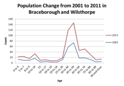- ^ Braceborough and Wilsthorpe. "Age Structure 2011". Neighbourhood Statistics. Office for National Statistics. Retrieved 14 March 2013.