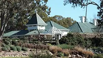 The main house is set within gardens which include an early carriage path from the south with remnant early hedging; a number of mature trees likely to date to the 19th century; a tennis court in the southwest corner of the garden; and terraces with stone retaining walls along the bank to the creek.[1]