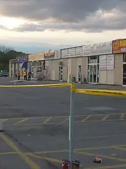 On May 15, 2008 in the early evening, three youths broke into the vacant bowling alley unit at the mall. They started a fire, which led to police and fire evacuated the mall. An investigation was scheduled for two to three days while engineers and city officials looked at the structural damage. The fire created $1 million worth of damage, particularly to Movie Experts, Shoppers Drug Mart and Brampton Home Furnishing.[16] Eight stores were affected, and an underground delivery corridor's concrete ceiling dropped 6 to 8 inches. Firefighters had to search a "maze of corridors" in the basement, to ensure no one remained in the building. One of the youths involved was 17-year-old Richard Sloppick who was subsequently charged with arson.[2] Power was turned off to all units except A&P and Coffee Time, and shut down traffic on Main Street.[2] Shoppers Drug Mart set up a temporary facility for prescriptions during the closure.[2]