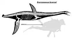 Brancasaurus (meaning "Branca's lizard") is a genus of plesiosaur which lived in a freshwater lake in the Early Cretaceous of what is now North Rhine-Westphalia, Germany. With a long neck possessing vertebrae bearing distinctively-shaped "shark fin"-shaped neural spines, and a relatively small and pointed head, Brancasaurus is superficially similar to Elasmosaurus, albeit smaller in size at 3.26 metres (10.7 ft) in length as a subadult.