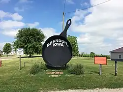 Brandon is home to Iowa's largest frying pan. Constructed in 2004, the frying pan promotes the Brandon Community Club's semi-annual Cowboy Breakfast. The pan weighs over 1,000 pounds.[10]