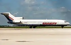 A Boeing 727-200 operated by the airline, approaching Orlando International Airport in 1989