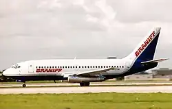 A Braniff Boeing 737-200 at Miami International Airport in 1989