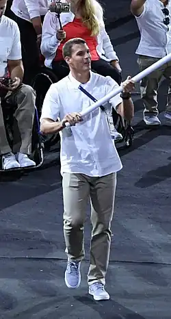 ![]() Budetić as flag bearer for Croatia at the 2016 Summer Paralympics Parade of Nations | |