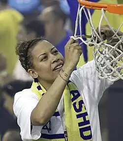 ![]() Elohim cuts the net after her team wins the 2012 championship | |