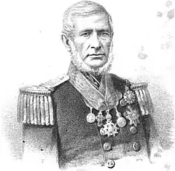 With the loss of more than half of its ships, in addition to the casualties of the squadron commanders, the Paraguayan naval force fled the battle, with only four vessels left.[43] Some time later, some controversy arose about who was the author of the idea of using the Amazonas as a battering ram. For the Argentine press, colonel Bernadino Gustavino, who was aboard the aforementioned warship, would have advised this action. Barroso requested a justification council, which had reports from several witnesses, and this gave him a favorable result. Later, in 1877, Delfim Carlos de Carvalho, a witness of the battle, also questioned the argument that Barroso had the idea of ramming the Paraguayan ships. Barroso replied with a small book in which he reaffirmed that he had taken the initiative in the Amazonas maneuver. It is possible that Gustavino and Barroso could have had the same idea at the time of the battle.[44][45]