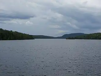 The lake is surrounded by 450 hectares of protected land of which "The Wolfe County Hunting and Fishing Club", founded in 1898, largely owns. The shores around the lake are almost entirely natural; only 40 chalets were built there. The lake receives the discharge from Sunday Lake to the south and is bordered to the north by route 263.[2]