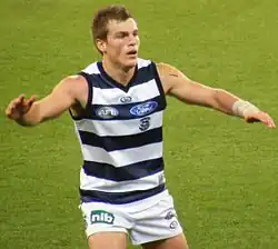 At the start of 2006, he moved out of his Werribee home and moved to Geelong to live with teammates Corey Enright and Henry Playfair, with whom he would later go on to start a personal training organisation. He then set his sights on playing a senior game for Geelong and, after playing in the team that had earlier won the pre-season cup, he was selected to play in round 5. Only minutes into his debut, on 29 April against the Sydney Swans, he broke his arm and only played eight games for the year.