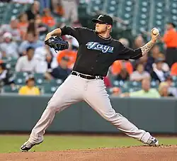 Although he pitches left-handed, he is usually right-handed; pitching is "the only thing he does left-handed".[2]