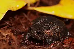 Breviceps acutirostris, also known as common rain frog,[1] strawberry rain frog,[1][2] or Cape short-headed frog, is a species of frog in the family Brevicipitidae.[2] It is endemic to the southwestern Cape region in South Africa.[1][2] It is a burrowing frog that lives in fynbos heatland and forests at elevations below 1,600 m (5,200 ft) above sea level. Development is direct[1] (i.e., there is no free-living larval stage[3]). It is threatened by habitat loss, although much of its habitat is also protected.[1]