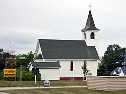 In 1961, Moran Township erected a historic marker near Trinity Lutheran Church to commemorate the historic community of Brevort.[3] The post office in Brevort was discontinued on December 30, 1964.[4] While Brevort no longer contains any industries, the community contains a small population and relies as a tourist destination along U.S. Route 2 between St. Ignace and Naubinway.[5] The Western Cemetery (also known as Brevort Cemetery) is located along U.S. Route 2 just northwest of the community center.[8] The cemetery's oldest grave dates back to 1893, and the cemetery remains active.