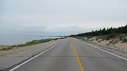 Along with Lake Michigan, other nearby geographic features include Brevoort River, Little Brevoort Lake, and Brevoort Lake, which are spelled differently than the community and township.[13][14][15] Brevort is also notable for containing several miles of scenic lakefront and sand dunes along the shores of Lake Michigan, which run parallel to U.S. Route 2 at this point. These dunes and easy public access are popular tourist destinations along the Lake Michigan Circle Tour.[16]