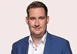Brian Nickholz has been a member of the SPD since 2005. Nickholz was a member of the Marl City Council from 2009 to 2021.[2] Before that, he was already a member of the SPD council faction as a knowledgeable citizen from 2007.[6] In September 2020, he took over the School and Sports Committee chairmanship in the Council.[7] From 2012 to 2016, he was the Juso district association chairman in the Recklinghausen district.[2] Since 2014, he has been delegated by the Marl City Council to the supervisory board of Klinikum Vest GmbH and Klinikum Vest Service GmbH.[4] Since 2015, he has been the SPD local association chairman of Alt-Marl/Brassert.[4] He has been chairman of the Marl SPD municipal association since 2018.[5] He was elected directly to the Bundestag in 2021 and has since been serving on the Committee on Housing, Urban Development, Building and Local Government. He won the Recklinghausen II federal constituency with 37.4% of the first-place votes.[8] He also ran for 50th place on the state list of the SPD of North Rhine-Westphalia.[9][10] In February 2025, Nickholz lost his seat in Bundestag against Lars Ehm.