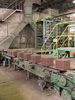 A brickworks, also known as a brick factory, is a factory for the manufacturing of bricks, from clay or shale. Usually a brickworks is located on a clay bedrock (the most common material from which bricks are made), often with a quarry for clay on site. In earlier times bricks were made at brickfields, which would be returned to agricultural use after the clay layer was exhausted.