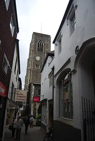 ![]() Bridewell Alley in 2013, with Bridewell Museum on the right and St Andrew's Church in the distance | |