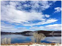 Bridgeport Reservoir is a man-made reservoir at the lower end of Bridgeport Valley in Mono County, California. Its earth-filled dam was constructed in 1923 by the Walker River Irrigation District,[3] along the East Walker River. The lake has a storage capacity of 42,455 acre-feet (52,367,000 m3)[4] and is supplying agricultural irrigation water for use in Nevada's Walker River Irrigation District. In some years, the reservoir has also been used to aid flood control for Lyon County, Nevada.[5]
