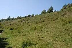To the east of Waterhall is Sweet Hill. The Hill has a flowery bank on its western slope (TQ 286 091), a bushy lynchet and an old dewpond site on its brow. The Sussex Border Path takes you north to Pangdean Bottom and the Pyecombe parish. Pangdean Bottom is the west of the A23 and is rented by a tenant farmer from Brighton and Hove City Council, who have owned it since 1924. It includes ancient chalk grassland slopes where there are still chalkland flowers and butterflies. In late summer, the valley's north side has one of the largest populations of autumn ladies-tresses orchid has been recorded, together with a large population of the white variety of the self heal violet. The scrub at the head of the valley is old and diverse, with wayfaring tree, old man's beard, honeysuckle, hazel, and gorse.[12]