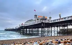 From top, left to right: Brighton Palace Pier; St John the Baptist's Church; the Royal Pavilion; Falmer Stadium; Rottingdean Windmill | |