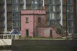 Remaining buildings on the Record of Protected Structures on Britain Quay include a former lock keeper's cottage and the three nearby canal locks which separate Grand Canal Dock from the River Liffey.[11] These three locks, named Westmoreland Lock, Buckingham Lock, and Camden Lock, were built in 1796.[12][13]