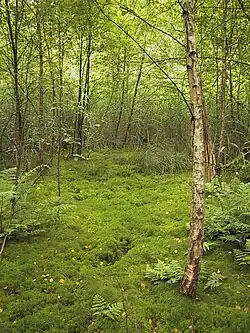 Betula woodlands have long been recognised on the Continent,[8] where the European Union lists several similar habitat types, the closest to W4 being EUNIS habitat G1.5 – Broadleaved swamp woodland on acid peat.[9] Woodland very similar to W4 occurs on the peaty soils of lower Normandy and Brittany, where it is considered a wet pedunculate oak-birch woodland with characteristically fluctuating water levels.[10]