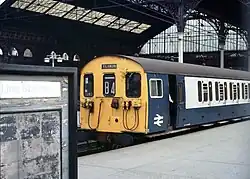 Initially these trains were painted in the standard mid-green livery adopted for electric multiple unit stock at nationalisation. This was replaced by a dark brunswick green livery with wide yellow bands in the early 1960s, the same livery as had been adopted for diesel multiple unit stock. In the late 1960s this was changed to rail blue, and from 1981, units sent for general overhaul received rail blue and grey livery.