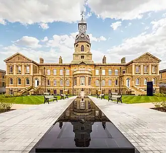 Large-scale military hospitals were built in the late Victorian period to serve the expanding garrison towns of Aldershot (the Cambridge Military Hospital, 1875-79 and the Connaught Military Hospital, 1895-98) and Colchester (the Colchester Military Hospital, 1893-98).[8] Hospitals on a similar scale were built in the Edwardian period, in London (Queen Alexandra Military Hospital, Millbank, 1903-5) and Portsmouth (Queen Alexandra Military Hospital, Portsdown Hill, 1904-7); these were the last new general military hospitals to be built on the pavilion plan.[9]