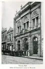 British nationals moved to Uruguay to help manage these interests and a number of institutions were launched to service their needs, such as The British Schools of Montevideo; the Victoria Hall theatre, The Montevideo Times newspaper (1892–1934), and the British Hospital.[14][f] In general, British immigrants succeeded in constructing a home away from home. They reproduced the Victorian values and "rigid protocol and etiquette" of the society from which they came.[22] Despite this, adaptation to native customs was not unheard of.[22] The community of British railroad employees in working-class Peñarol took part enthusiastically in the local carnival, with an Englishwoman once taking first prize in the costume contest.[22]