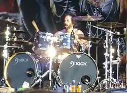 Drummer Johnny Dee performing live with Britny Fox, 2013