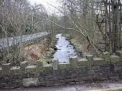 There was also a colliery in the village known as Broadclough Colliery Coal Mine which was owned by George Hargreaves & Co, was operational by 1894 employing 3 men underground and one above ground[44] however was disused by 1931.[45] Broadclough has one of the most significant gravity mine water discharges in the UK which flows from the Old Meadows mine area of Broadclough, through the Broadclough Minewater Treatment Works to the River Irwell close to Broadclough Mill.[46][47]